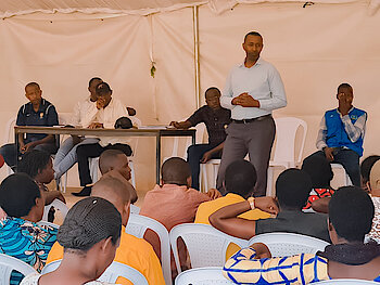 Mu Nteko rusange y’abaturage yabereye mu Kagari ka Rukatsa, Umurenge wa Kagarama, Umuyobozi Nshingwabikorwa w’Akarere ka Kicukiro wungirije , HUSS…