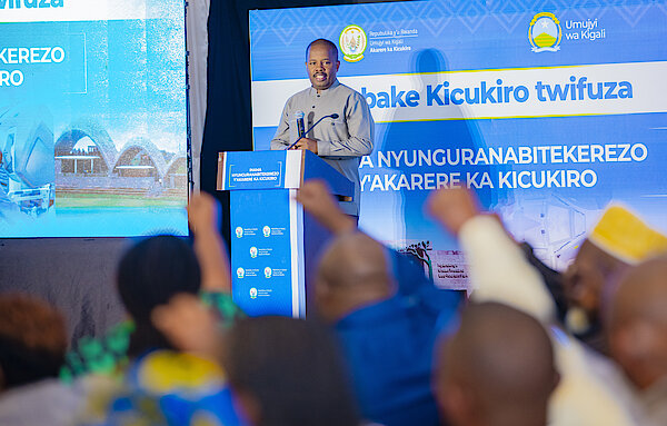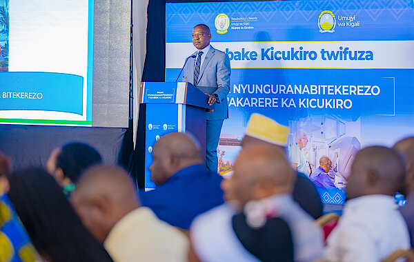 Umuyobozi w'Umujyi wa Kigali DUSENGIYUMVA Samuel aganiriza abitabiriye Inama Nyunguranabitekerezo