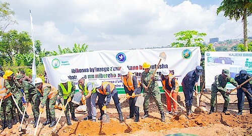 Abayobozi mu nzego zitandukanye batangiza iyubakwa ry'iteme rya Kajeki