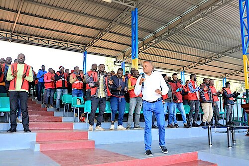 Umuyobozi w’Ingabo wa Div1 Ikorera mu Mujyi wa Kigali no mu Turere twa BUGESERA na RWAMAGANA Col. BAHIZI Theodomir yagarutse ku mutekano w’Igihugu muri rusange abwira Abamotari ko Umutekano mu gihugu no ku mbibi zacyo ari ntamacyemwa “ Umutekano mu Gihugu no ku mbibi hose wifashe neza cyane murabizi, niba ukomoka Rusizi, Rubavu n’ahandi hose ubaze abavandimwe bariyo barakubwira ko Umutekano ari nta macyemwa kandi namwe aho muri aha murabizi” . Yavuze ko ariko Umutekano kugira ngo ugerweho bisaba uruhare rwa buri wese by’umwihariko asaba abamotari ko igihe cyose babonye icyahungabanya Umutekano bakwihutira kubigeza ku nzego zibishinzwe mu buryo bwihuse ndetse afasha Abamotari kubona Nomero za Telefini bajya bifashisha igihe bashaka gutanga amakuru.