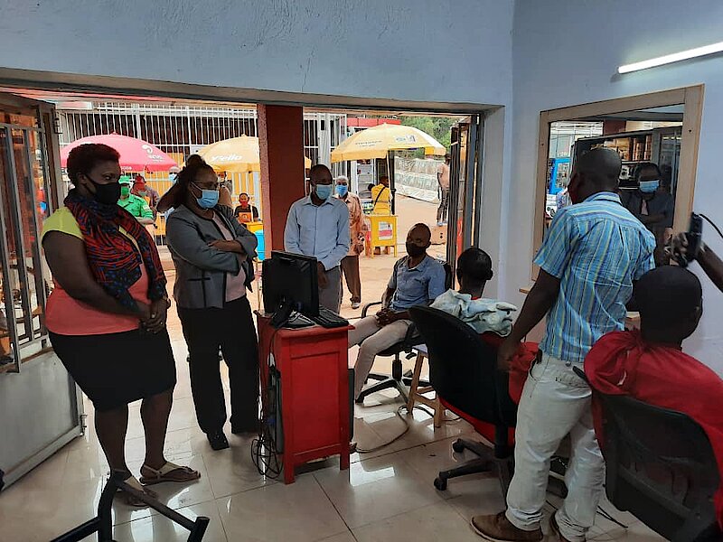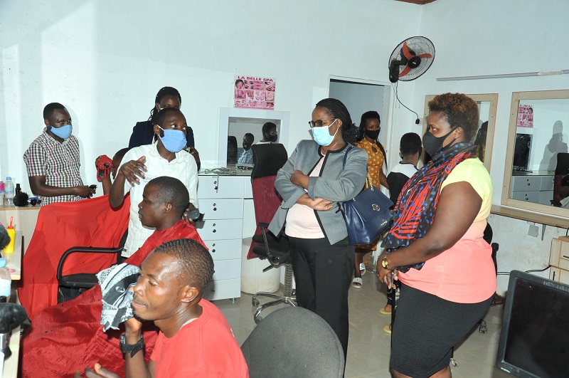 Minisitiri Dr Mukeshimana Geraldine yasabye abakora mu nzu zitunganya imisatsi gukaza ingamba zo kwirinda COVID19 (Foto Kayitare Jean Paul)