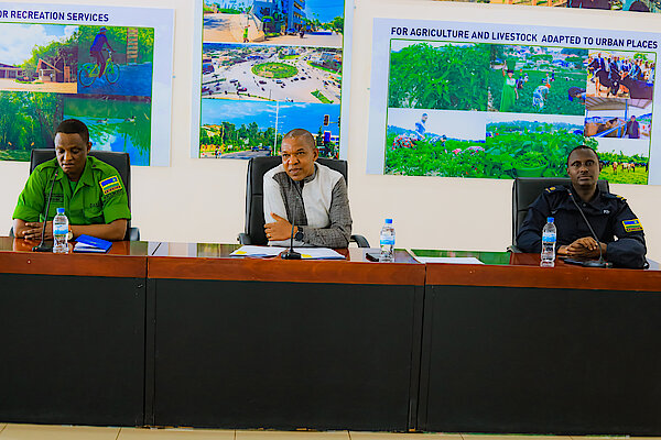 Umuyobozi Nshingwabikorwa w'Akarere ka Kicukiro MUTSINZI Antoine (Hagati) aganiriza abagize Urwego rwa DASSO bashya
