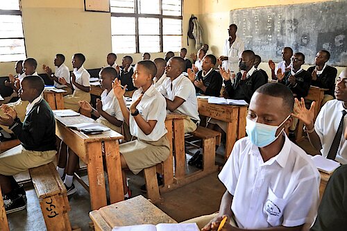 Minisitiri Dr. Valentine UWAMARIYA yagenzuye uko Abanyeshuli bahabwa amasomo.