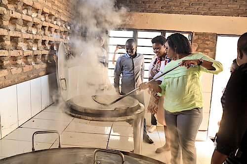 Abayobozi bagenzuye uburyo Abanyeshuli bategurirwa amafunguro.