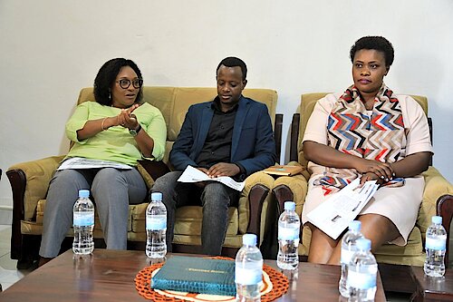 Minisitiri w'Uburezi Dr. Valentine UWAMARIYA aganira n'Umuyobozi Nshingwabikorwa w'Akarere Madamu UMUTESI Solange.