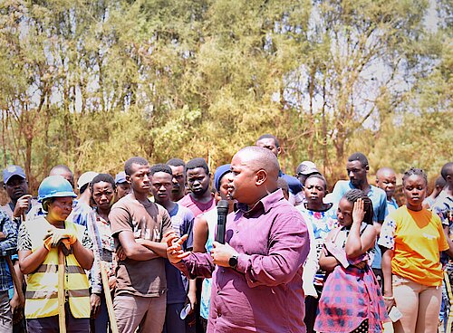 Dr. Merard MPABWANAMAGURU aganira n'abitabiriye umuganda.