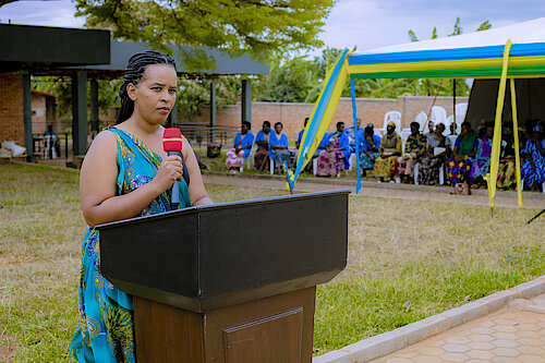 Umuyobozi Nshingwabikorwa w'Akarere wungirije Huss Monique ageza ijambo ku bitabiriye ibirori