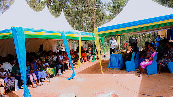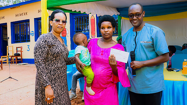 Umuyobozi Nshingwabikorwa w'Akarere wungirije hamwe n'Umuyobozi wa “Reach The Children-Rwanda” MUSUHUKE Benjamin bashimira umubyeyi